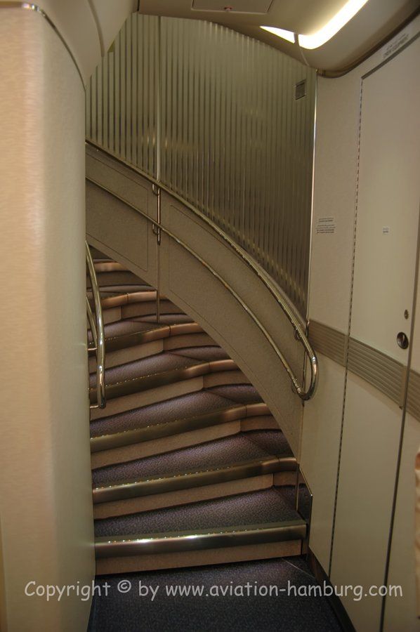 E llegado a la parte trasera del avión, y ahí esta la escala que une “Main Deck” y “Upper Deck”.